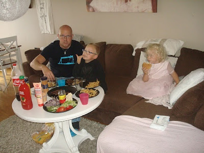 Sen förberedde jag middagen, ugnskorv och ris, som vi åt direkt när M kommit hem. Strax efter det, hunnit ställa undan disken och vika tvätt, kom ina föräldrar för att sitta barnvakt åt barnen medan vi for ner till IKEA.