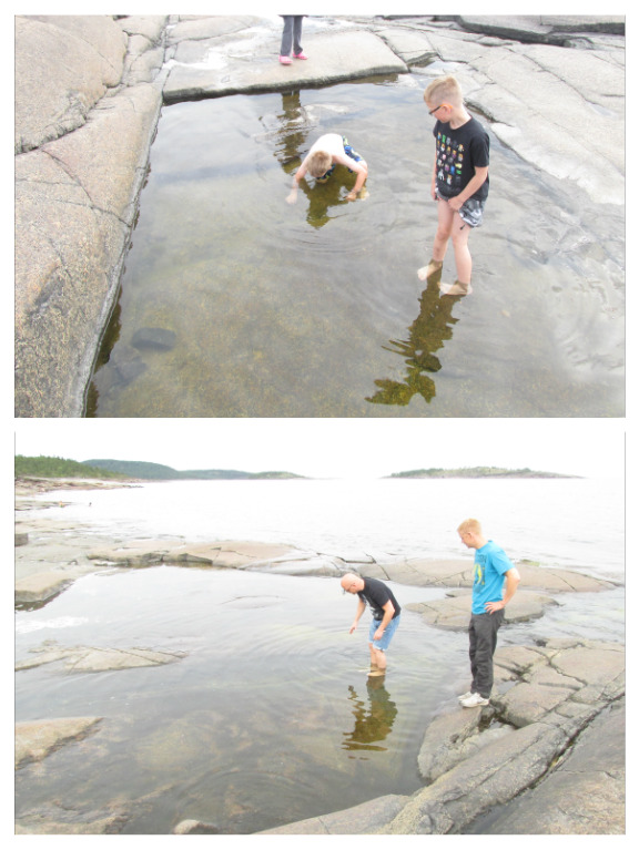 Barnen lekte ute hela kvällen tills det blev för mycket mygg, hela tomten var full av smågrodor (paddor????) som hoppade omkring och i sjön fångade de småfisk och vatteninsekter.